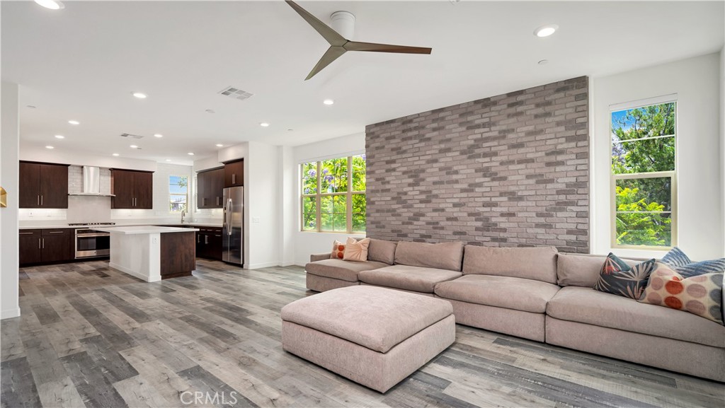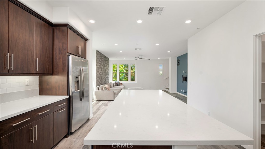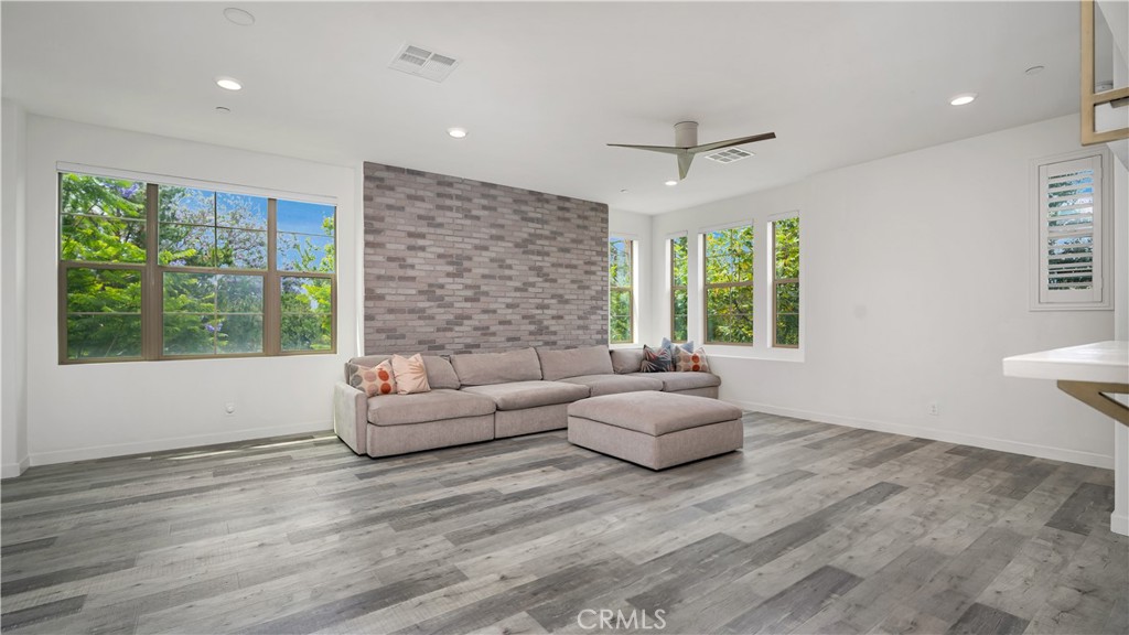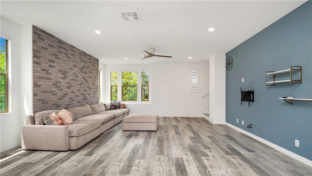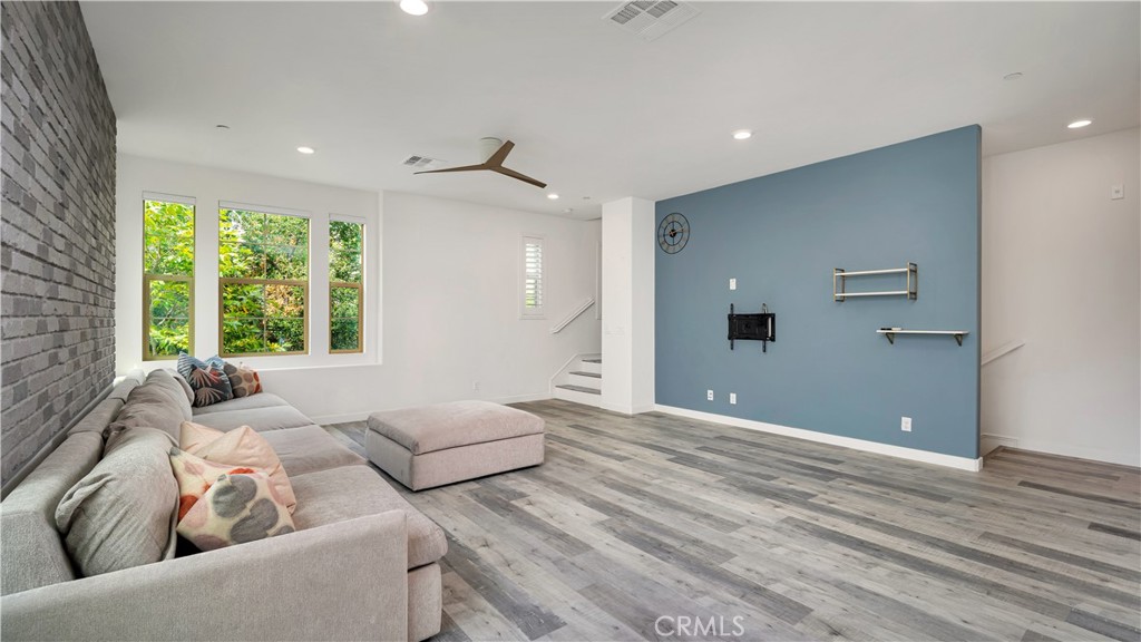 Perfectly positioned on a PRIME CORNER LOT, this beautifully upgraded TRI-LEVEL END-UNIT home offers SWEEPING VIEWS of Beacon Park and is located just steps from Beacon Park and Beacon Park K-8 School. In one of the most desirable locations in the Great Park neighborhood, this 3-BED, 3.5-BATH residence features a versatile floor plan with a MAIN LEVEL bedroom and full EN-SUITE BATH, perfect for family, guests, or a private office. You'll also find DIRECT ACCESS to a 2-CAR GARAGE complete with a TESLA EV CHARGER and plenty of storage. On the second floor, enjoy a sunlit OPEN CONCEPT LAYOUT with several windows only possible in an end-unit. The SPACIOUS CHEF'S KITCHEN features a LARGE WALK-IN PANTRY, KITCHEN ISLAND, and flows into the dining area, bright living room, and a PRIVATE BALCONY. ALL APPLIANCES ARE INCLUDED (refrigerator, washer, and dryer), along with TV mounts and a CUSTOM-FIT living room couch for added convenience. The top level offers a luxurious PRIMARY SUITE with a WALK-IN CLOSET and spa-like bathroom with DUAL SINKS and WALK-IN SHOWER, plus a secondary bedroom with its own EN-SUITE BATH and generous walk-in closet. Residents enjoy RESORT-STYLE AMENITIES including pools, spas, scenic trails, playgrounds, clubhouses, BBQ areas, and sports courts all just steps from your front door. Zoned to the TOP-RATED Irvine Unified School District schools and just minutes from dining, shopping, and major freeways.